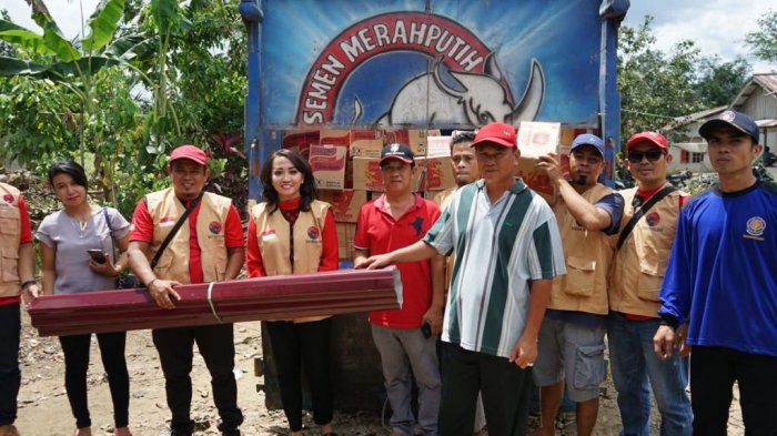 Untuk meringankan beban dari masyarakat, Angeline Fremalco, SH pun memberikan bantuan berupa 100 keping seng. Sedangkan Frederika Cornelis menyerahkan 100 sak semen.