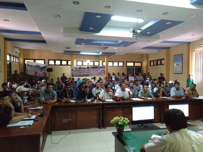 Sehingga dalam penyampaian Aspirasinya, masa di sambut oleh Asisten II Bupati Sambas Uray Heriansyah, Kepala Bappeda Kabupaten Sambas Sabtuni, dan Kepala Dinas PU Sabib.