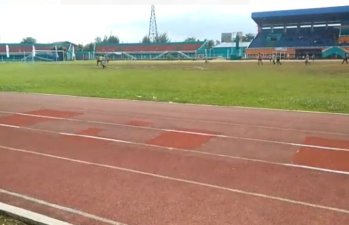 Sambas berkostum merah hitam melawan Landak Jersey berwarna Silver sementara ini bermain imbang 1-1 dibabak pertama