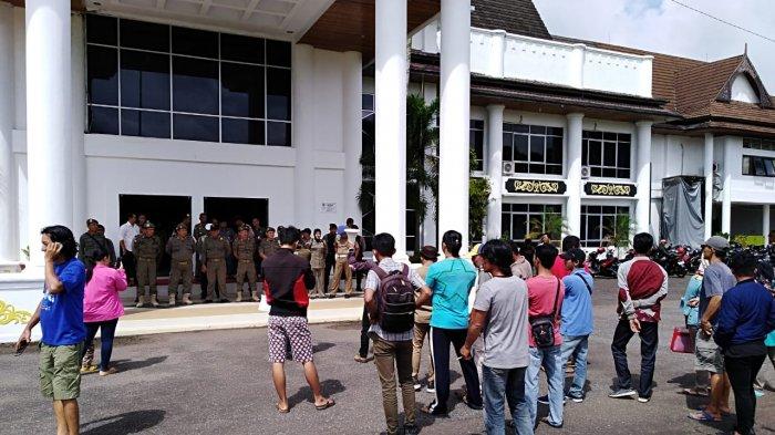 TRIBUNPONTIANAK.CO.ID, MEMPAWAH- Asisten Tata Praja Pemkab Mempawah, Juli Suryadi Burdadi, siang ini menerima secara langsung puluhan orang yang melakukan unjuk rasa di halaman Kantor Bupati Mempawah. Senin (07/01/2019).