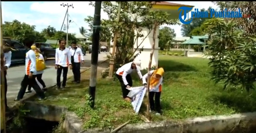 TRIBUNPONTIANAK.CO.ID, SAMBAS - Bawaslu Kabupaten Sambas, pagi ini melaksanakan penertipan terhadap pemasangan APK yang tidak taat aturan, Senin (4/2/2019).