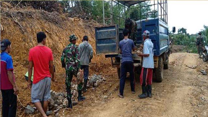 TRIBUNPONTIANAK.CO.ID, SANGGAU - TNI Manunggal Membangun Desa (TMMD) ke-104 tahun 2019 yang dilaksanakan di Kecamatan Kembayan, Kabupaten Sanggau, mendapat sambutan hangat dari masyarakat sekitar yang turut berperan membantu untuk memperlancar program pembangunan fisik TMMD.