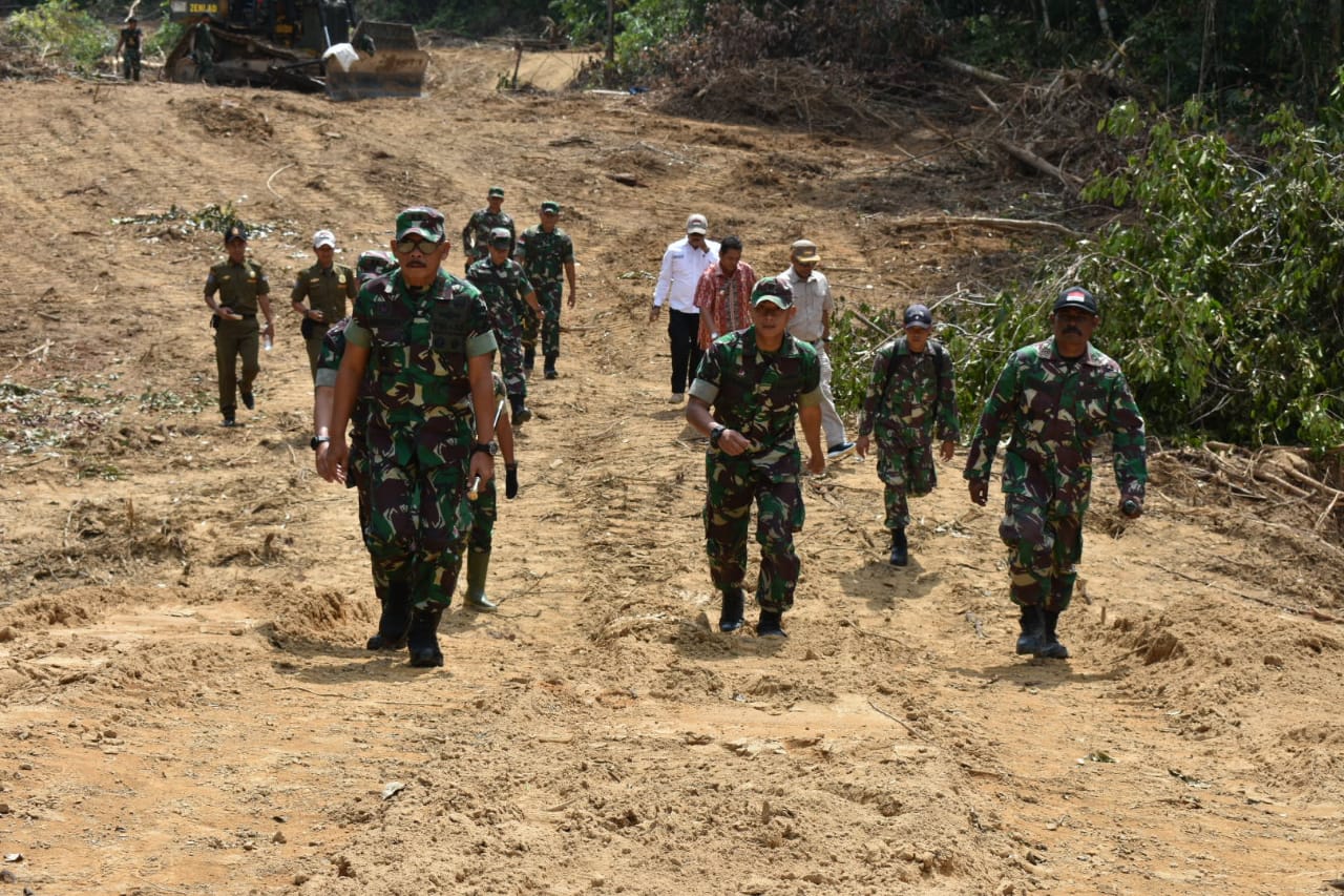 Pangdam XII/Tpr dalam kesempatan tersebut, meninjau langsung lokasi pembangunan pembukaan jalan sepanjang 20 Km yang akan menghubungkan Desa Batu Lapis dengan Beginci Darat.