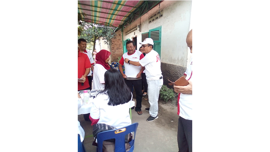 Ketua Umum N4J Dr RE Nainggolan MM memantau dan langsung berkomunikasi dengan warga sekitar yang turut memanfaatkan pelayanan pemeriksaan kesehatan.