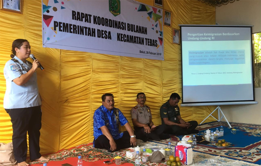 TRIBUNPONTIANAK.CO.ID, SAMBAS – Kantor Imigrasi Kelas II TPI Sambas melakukan sosialisasi keimigrasian di Kecamatan Tebas, Kabupaten Sambas dalam Kegiatan Rapat Koordinasi Bulanan Pemdes Kecamatan Tebas.