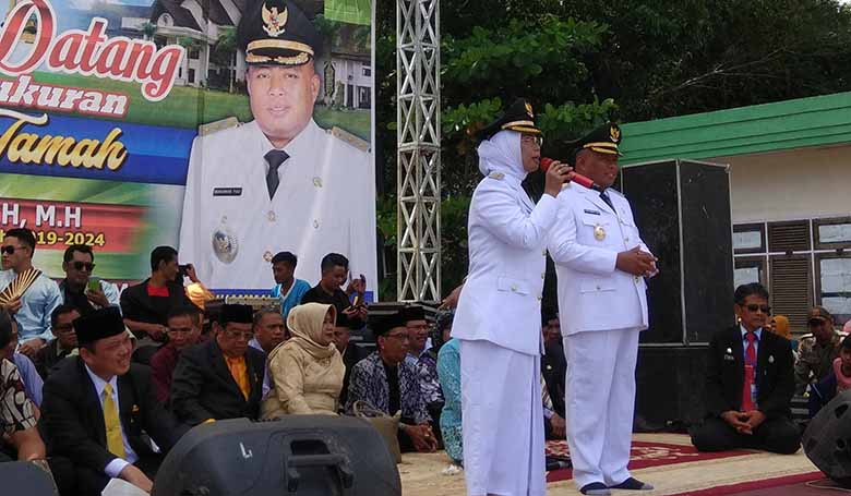 Pidato Perdana Bupati Erlina dan Wakil Bupati Muhammad Pagi Dihadapan Ribuan Warga Mempawah