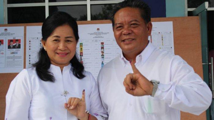 SANGGAU - Bupati Sanggau Paolus Hadi berserta isteri Arita Apolina dan dua putrinya menggunakan hak pilihnya di TPS 09 di halaman Kantor Imigrasi Kelas II Sanggau, Jl Sutan Syahrir, Kecamatan Kapuas, Kabupaten Sanggau, Rabu (17/4/2019).