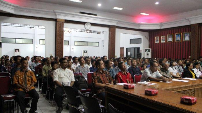 SANGGAU - Bupati Sanggau Paolus Hadi membuka sosialisasi penyaluran dana bantuan hibah bidang keagamaan tahun anggaran 2019 se-Kabupaten Sanggau di Aula Kantor Bupati Sanggau, Selasa (24/4/2019).
