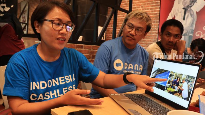 Restituta Ajeng PR Manager Dana menunjukkan platform pembayaran digital Dana di KFC Ayani Megamall, Jalan Ahmad Yani, Pontianak, Kalimantan Barat, Kamis (2/5/2019) siang. Dana telah mempersiapkan pilot project penggunaan Dana untuk pembayaran masyarakat pedesaan bekerja sama dengan Bumdes untuk menggerakkan ekonomi digital.