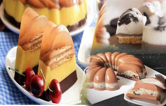 - Tuang adonan sisa pelan pelan dengan menggunakan sendok, ratakan. Kemudian susun oreo tanpa krim putih diatasnya. Simpan dalam suhu ruangan sampai dingin dan masukan kedalam kulkas agar puding tambah dingin.