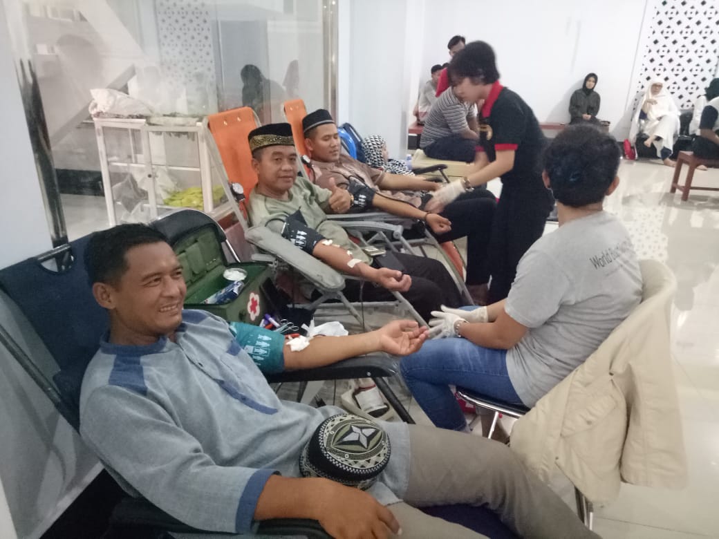 Jamaah masjid Agung Al-Mu'awwanah Sanggau antusias menyambut safari ramadan berdonor yang digelar PMI Sanggau di masjid Agung Al-Mu'awwanah
