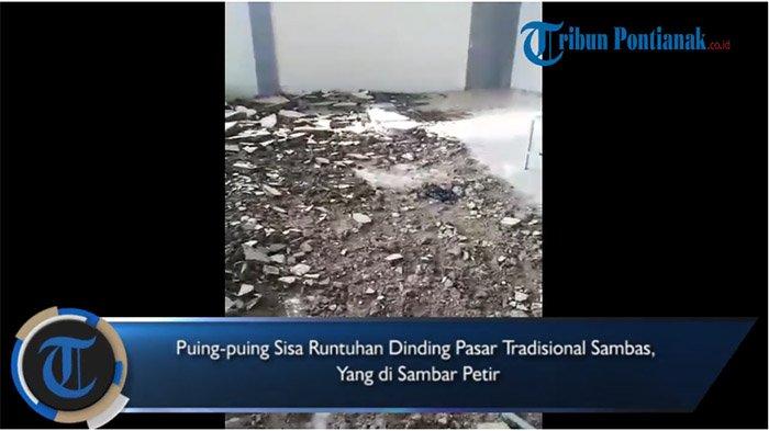 VIDEO: Puing-puing Sisa Runtuhan Dinding Pasar Tradisional Sambas Setelah Disambar Petir