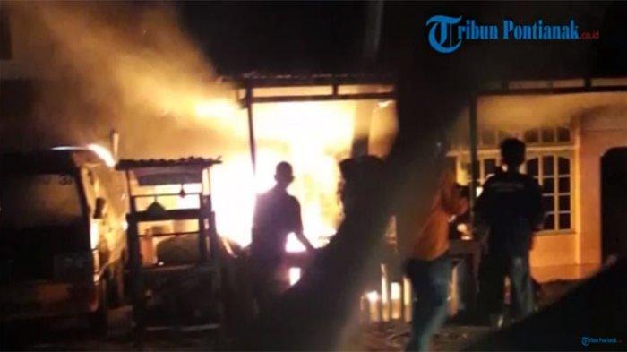 PONTIANAK - Petugas Pemadam Kebakaran (Damkar) dan warga bergotongroyong berjibaku padamkan api yang membakar kios yang menyatu dengan rumah pada Sabtu (1/6/2019) malam sekitar pukul 19.40 WIB.