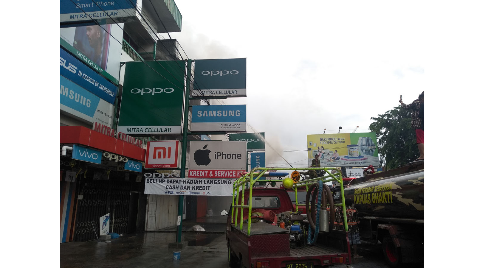 Lokasi kejadian tidak jauh dari Ramayana, terlihat beberapa pemadam kebakaran juga membasahi bangunan lain untuk menghindari lajunya api yang menjalar.