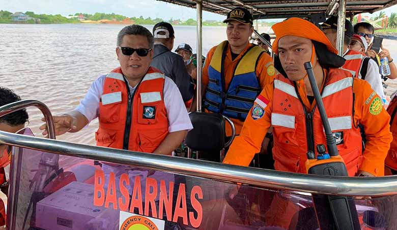 Muda Mahendrawan bersama Kepala Basarnas Pontianak Hery Marantika, Dandim Ketapang Letkol Kav Jami'an, dan jajaran Polsek Sungai Ambawang langsung naik perahu Resque milik Basarnas Pontianak.