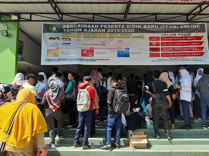 PONTIANAK - Anggi (16) satu di antara Alumni SMPN 6 Pontianak menjadi siswa yang mengikuti Pendaftaran Peserta Didik Baru (PPDB) di SMAN 7 Pontianak yang baru saja dibuka hari ini, Senin (24/6/2019).
