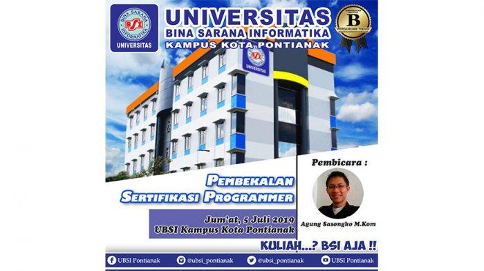 PONTIANAK - Lembaga Sertifikasi Profesi Universitas Bina Sarana Informatika (LSP UBSI) akan menggelar kegiatan Sertifikasi Programmer yang diperuntukkan bagi mahasiswa Prodi Sistem Informasi UBSI Kampus Kota Pontianak.