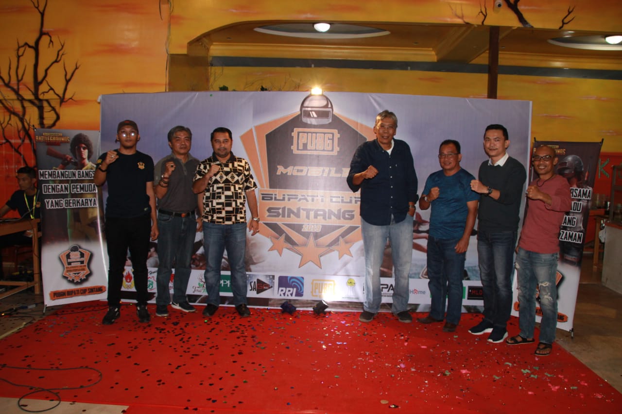 SINTANG - Open Turnamen e-Sport PUBG Mobile Bupati Sintang CUP Tahun 2019 se-Kalbar yang diikuti 180 tim secara resmi digelar di Cafe Teras Kota (Teko), Jalan Cempaka, Kelurahan Ladang, Kabupaten Sintang, Jumat (26/7/2019) malam.