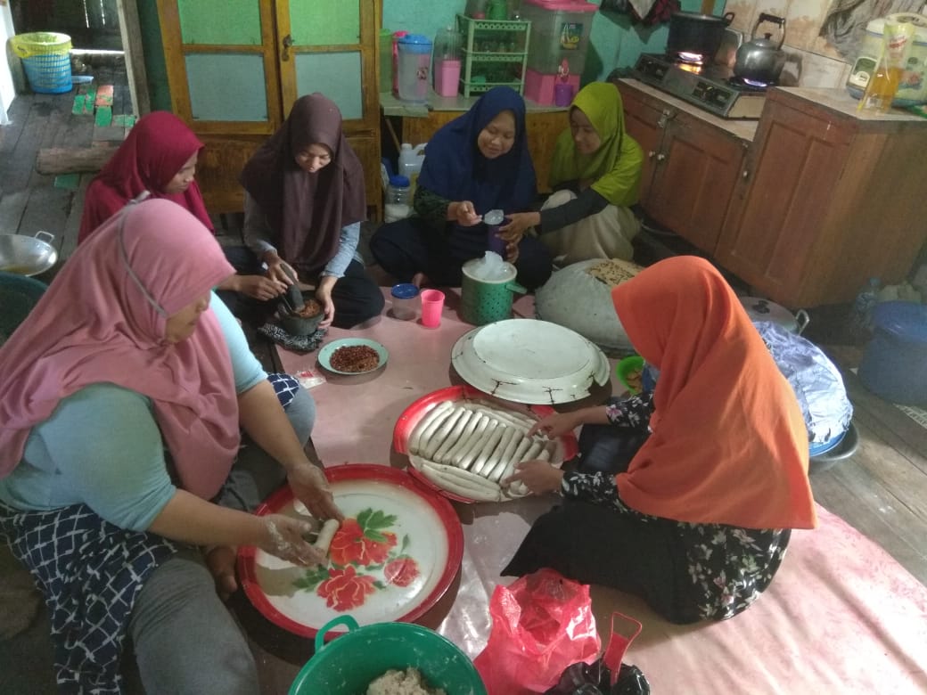 Para peserta KKL IAIN ini memperkenalkan kerupuk basah pada masyaraka setempat.