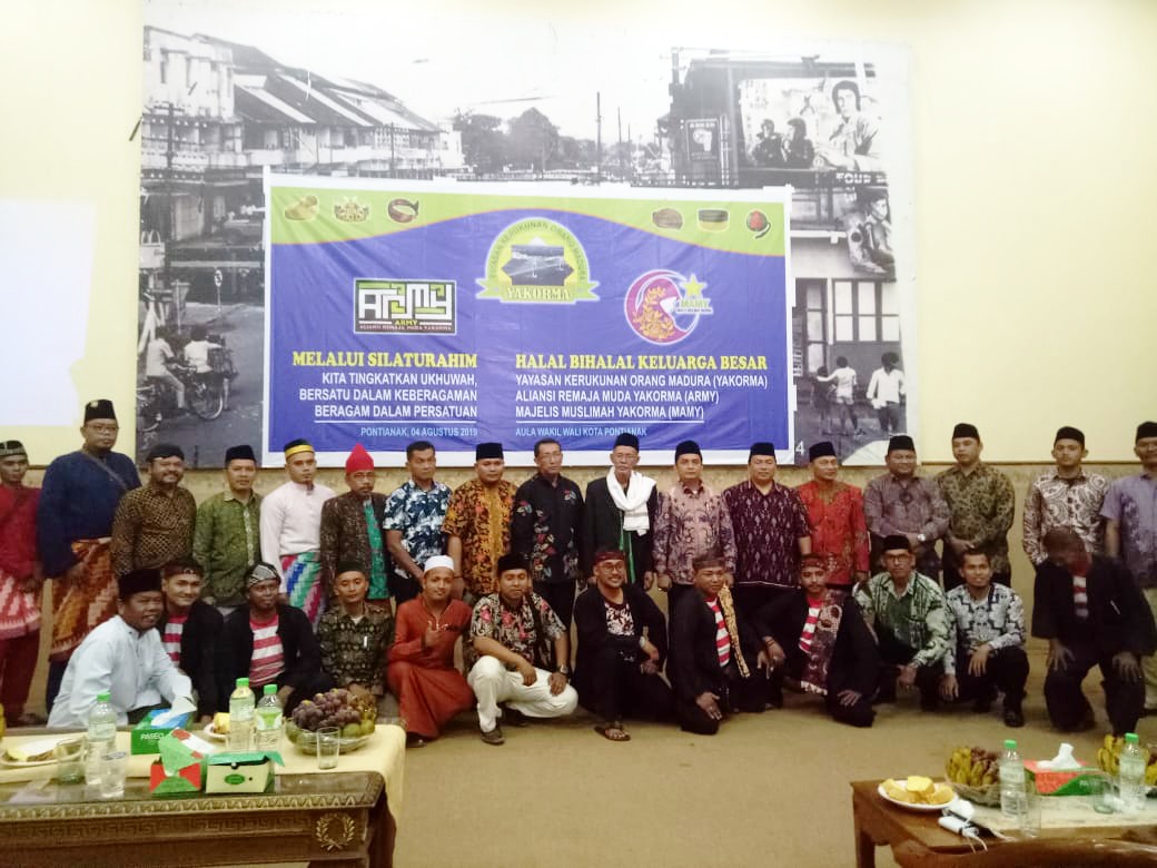 PONTIANAK - Yayasan kerukunan orang madura (Yakorma), beserta Aliansi Remaja Muda Yakorma (Army) dan Majelis Muslimah Yakorma (Mamy) se-Kalbar, adakan Halal bihalal di Aula Wakil Walikota Pontianak, pada Minggu (04/08/2019).