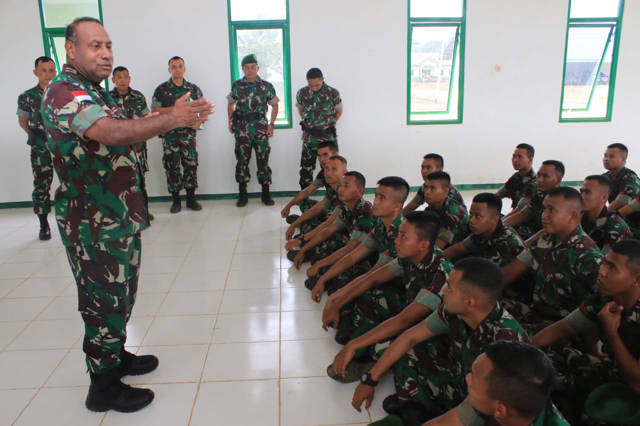 Pangdam XII/Tpr dihadapan para prajurit Kompi Senapan A memberikan apresiasi terhadap kondisi pangkalan yang bersih meskipun masih banyak juga yang masih harus dibenahi karena termasuk Kompi senapan yang baru.