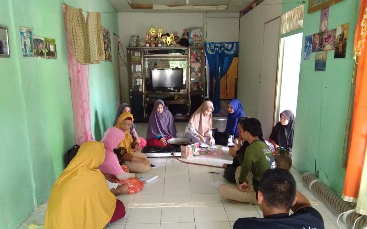 SAMBAS - Kelompok KKL 62 IAIN Pontianak bidang ekonomi, wisata dan kuliner melaksanakan program kerjanya dihadapan ibu-ibu sekitar posko dan ibu-ibu Pengajian Siti Aisyah.