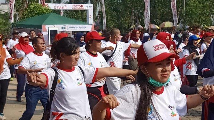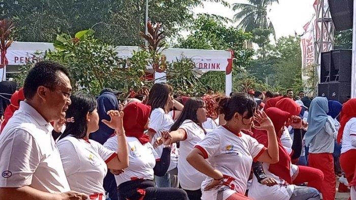 Senam zumba di Taman Mempawah dalam rangka gerak jalan sehat 5K, BUMM Hadir Untuk Negeri, Minggu (18/8/2019) pagi.