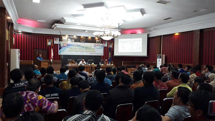 SANGGAU - Wakil Bupati Sanggau Yohanes Ontot membuka rapat koordinasi verival data kemiskinan bantuan pemerintah non tunai (BPNT) dan Rumah tidak layak huni (RTLH) di Aula Kantor Bupati Sanggau, Jumat (23/8/2019).