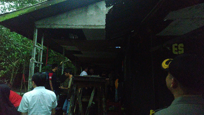"Tadi saya di dalam, ada yang triak dari luar, katanya suruh keluar ada kebakaraan, pas keluar, liat listrik udah berasap, atap rumah udah berapi,"katanya.