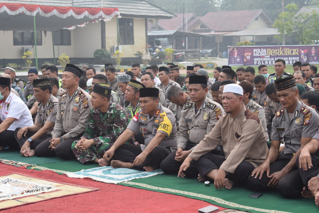 Kapolres Sambas AKBP Permadi Syahids Putra dan jajaran turun hari ini melaksanakan sholat istisqa bersama di halaman Mapolres Sambas