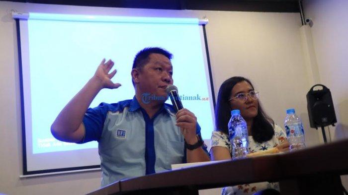 Bambang Hartoyo Area Manager BFI Finance Wilayah Pontianak saat memaparkan kegiatan pelatihan bisnis micro yang akan digelar BFI Finance, di Warung Upgrade, Jalan Suprapto, Pontianak, Kalimantan Barat, Kamis (17/10/2019). BFI Finance dorong UMKM Pontianak naik kelas melalui pelatihan bisnis mikro tanggal 18-19 Oktober di Hotel Golden Tulip.