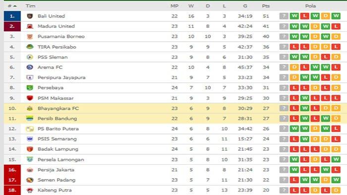 Bhayangkara FC dan Persib Bandung sementara sama-sama mengantongi 27 poin.
