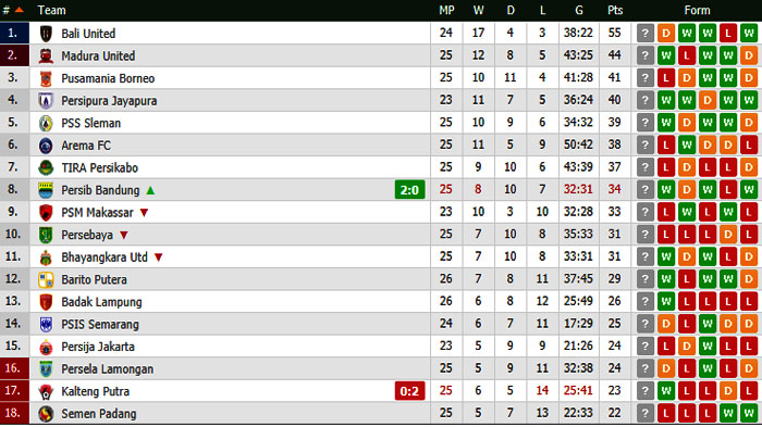 Klasemen Liga 1 Usai Hasil Badak Lampung vs Arema FC dan Laga Kalteng Putra vs Persib Bandung
