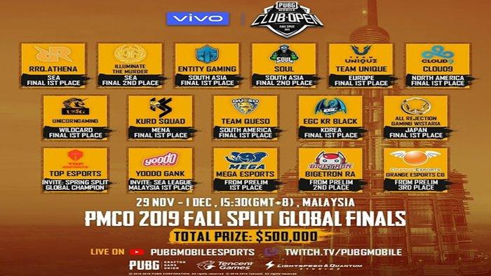 JADWAL Global Final PMCO Fall Split 2019 - Live Streaming Turnamen Dunia PUBG Mobile Dimulai Besok