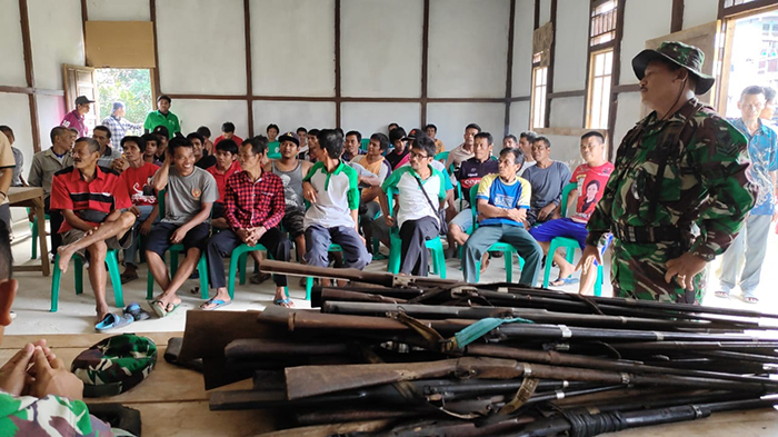 Salah satu masyarakat yang enggan disebutkan namanya menyampaikan bahwa penyerahan senjata api dilaksanakan secara sadar dan sukarela.