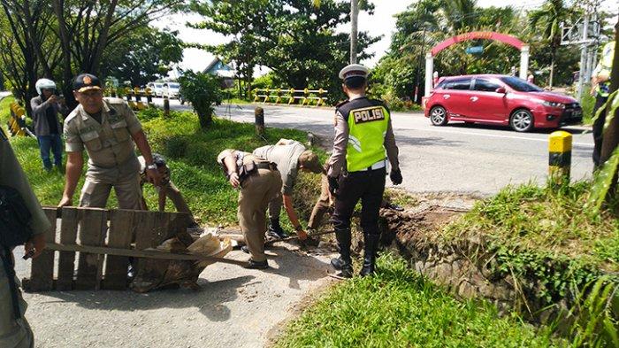 KUBU RAYA - Satlantas Polres Kubu Raya bersama dengan Satpol PP Kubu Raya melakukan penertiban tikungan liar (U-Turn) di sepanjang jalan Arteri Supadio, Senin (9/12/2019).