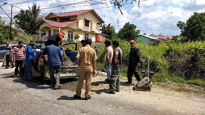 "Alhamdulillah hari ini penambalan jalan bisa kita lakukan. Bisa kita lihat cukup banyak ruas jalan yang rusak dan berlubang yang dapat mengganggu pengguna jalan, sehingga harus kita perbaiki," katanya.