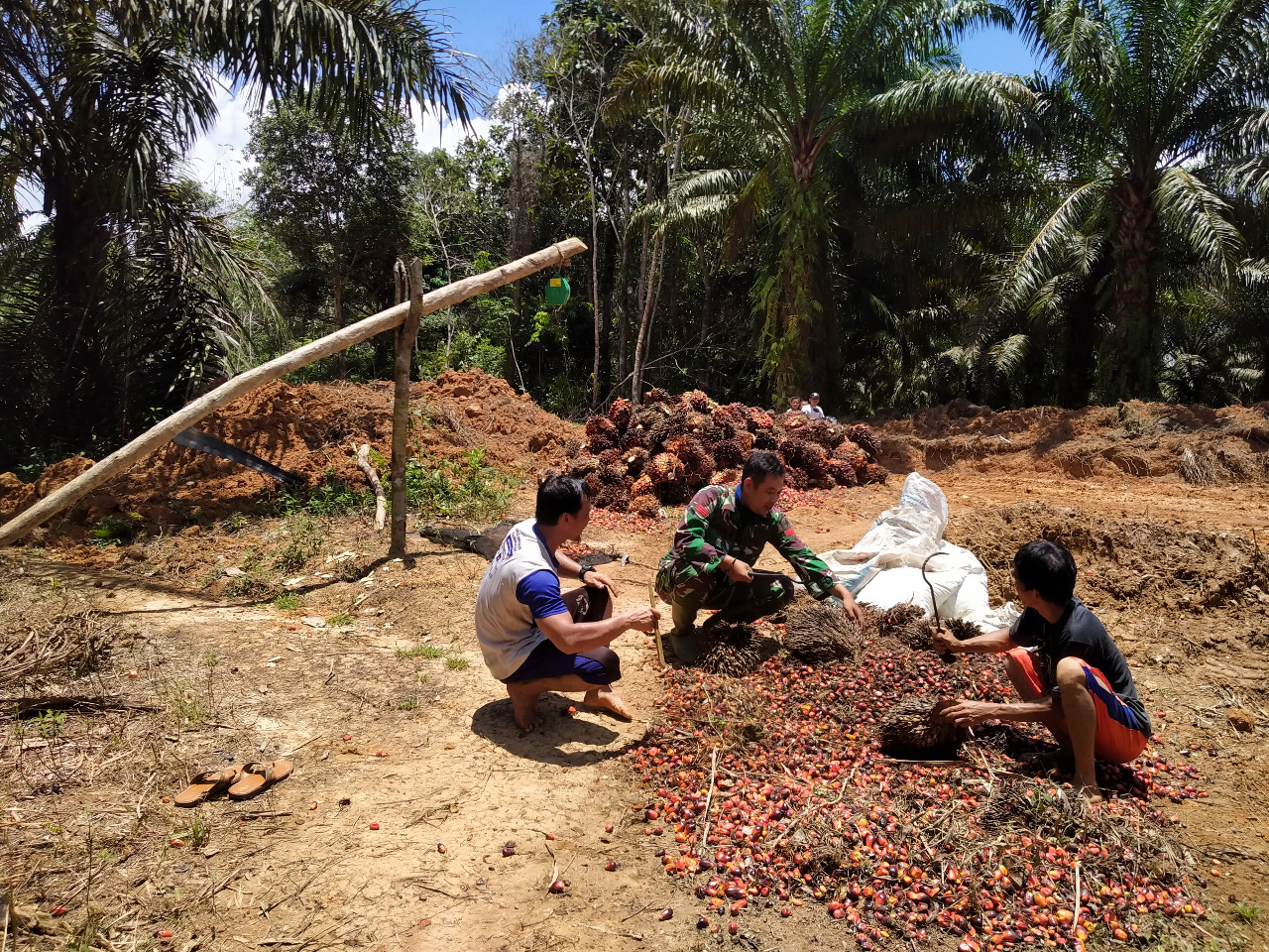 Namun secara spontan tak sengaja melihat masyarakat Imam yang sedang mengumpulkan brondol sawit didekat lokasi TMMD.