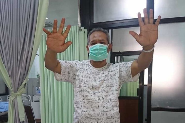 Sarno (56) merupakan pasien yang telah sembuh dari Covid-19, asal Kabupaten Magetan, Jawa Timur.