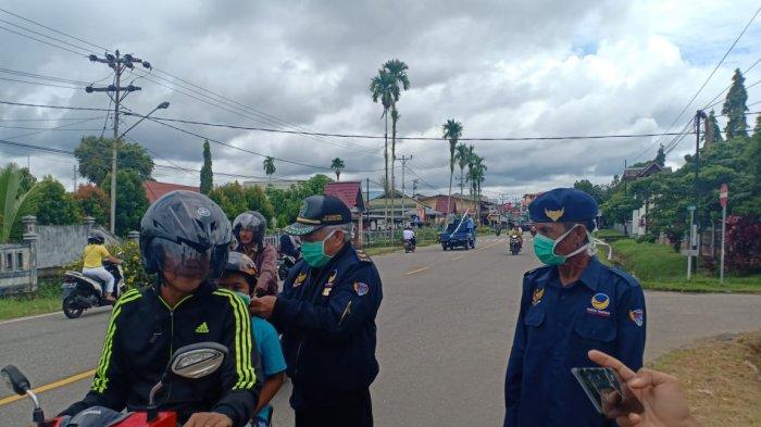 Para Kader DPD Nasdem Kabupaten Kapuas Hulu dan Relawan H Baiduri membagikan ratusan masker gratis kepada masyarakat secara gratis.