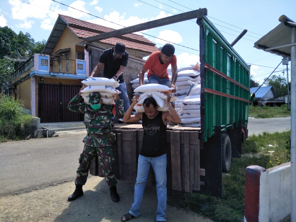 TRIBUNPONTIANAK.CO.ID, MEMPAWAH - Kodim 1201/Mph dan Koramil jajaran Membantu proses Pendistribusian beras Bantuan pemerintah dalam mencegah penyebaran virus Covid 19.