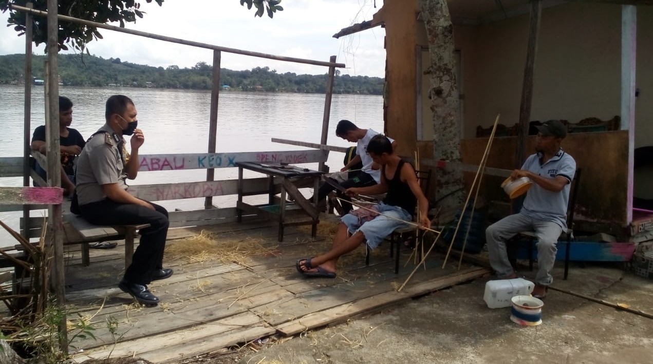 TRIBUNPONTIANAK.CO.ID, PONTIANAK - Bhabinkamtibmas Polsek Kapuas Bripka Saprin Gunawan melaksanakan kegiatan sambang kepada warga masyarakat yang sedang bersantai serta berikan himbauan-himbauan kamtibmas, Sabtu (9/5/2020).