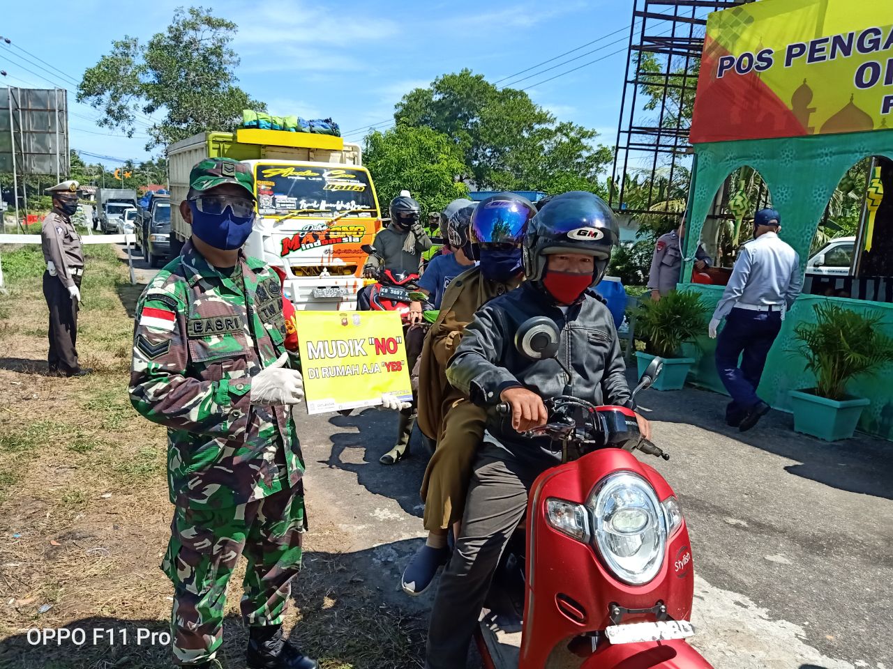 Serta himbauan kepada pelintas untuk salalu menjaga kesehatan setelah sampai di rumah atau tujuan jangan lupa mencuci tangan dan selama beraktifitas selalu menggunakan masker memberitahu kepada semua pelintas tentang kebijakan pemerintah tentang larangan mudik.