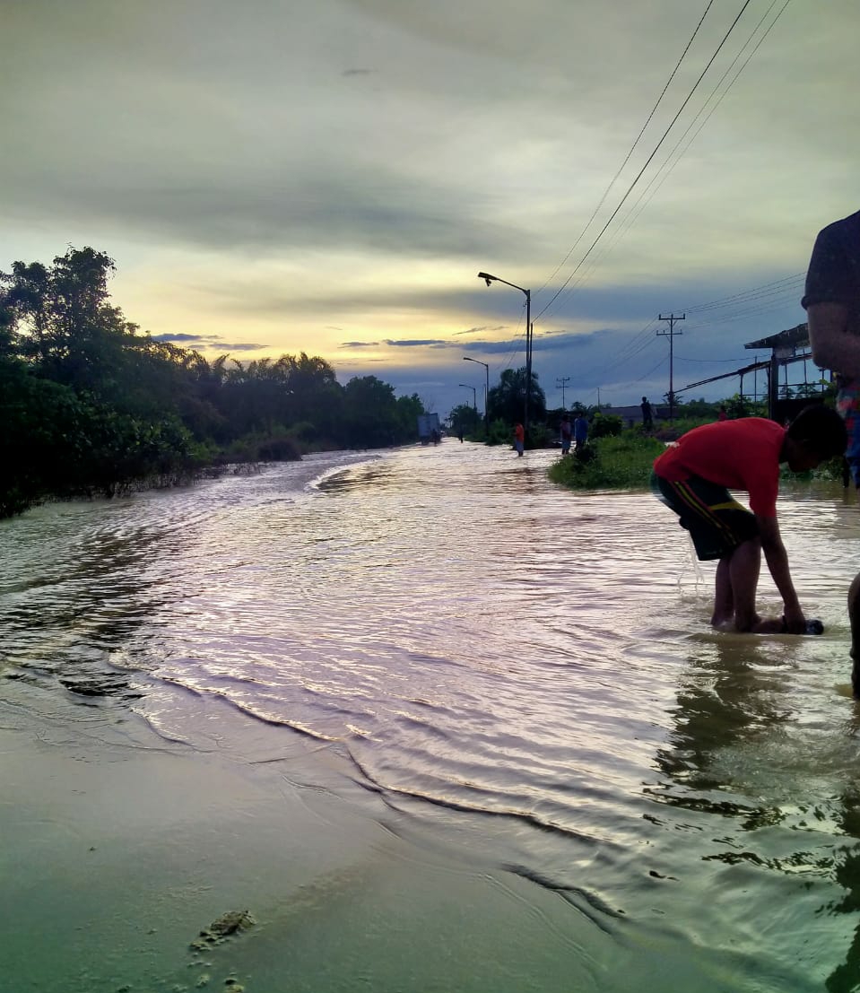 "Benar sejak tadi subuh air menggenangi jalan raya di jalur Sutra," ujarnya, saat di hubungi.