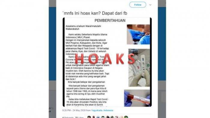 Cek Fakta - Surat Edaran MUI Tolak Rapid Test Covid-19 Viral di Media Sosial Facebook dan Twitter