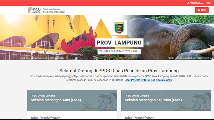 Hal tersebut diketahui dari ketengan di laman utama portal PPDB Lampung 2020, di lampung.siap-ppdb.com.