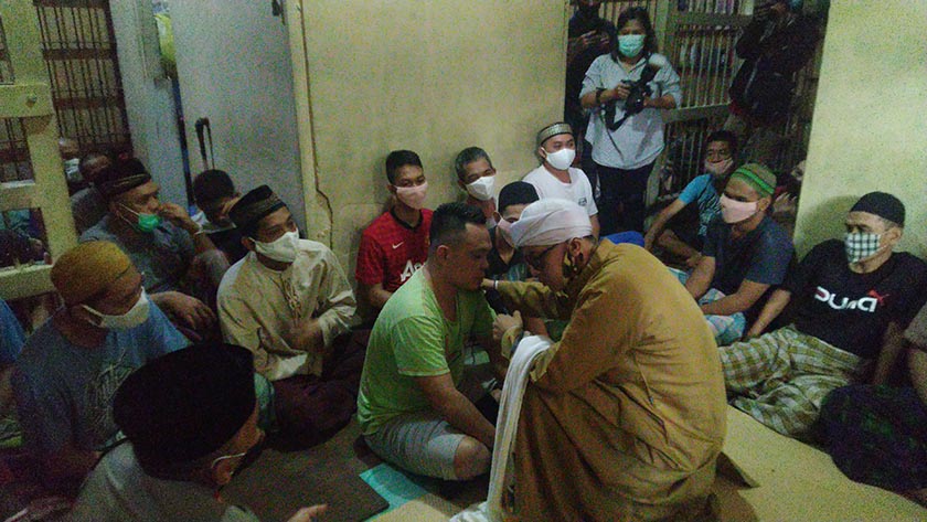 Para tahanan terlihat khidmat mendengar tausiah dari Habib Fachri.
