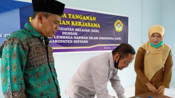TRIBUNPONTIANAK.CO.ID, SINTANG - DPD Lembaga Dakwah Islam Indonesia (LDII) Kabupaten Sintang menandatangani kerjasama dengan Sanggar Kegiatan Belajar (SKB) untuk bersama-sama menciptakan generasi emas 2045.