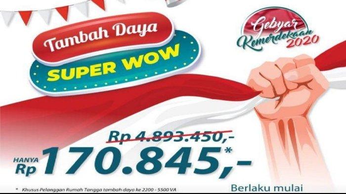 PT PLN (Persero) menyebutkan program Gebyar Kemerdekaan 2020 Tambah Daya Listrik "Super Wow" telah berhasil menarik lebih dari 100.000 pelanggan untuk melakukan tambah daya dengan harga diskon.