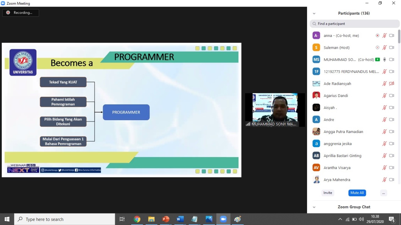 TRIBUNPONTIANAK.CO.ID, PONTIANAK - Universitas Bina Sarana Informatika (UBSI) Kampus Pontianak sukses menggelar Webinar dengan tema “Set Up Your Mind to Be a Young Programmer in Industry 4.0 and Society 5.0” via live conference menggunakan Zoom Meeting Apps beberapa waktu lalu.